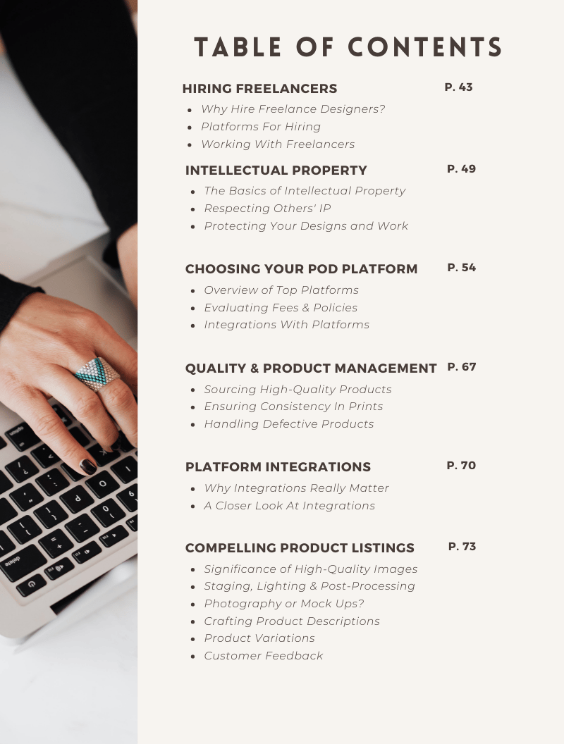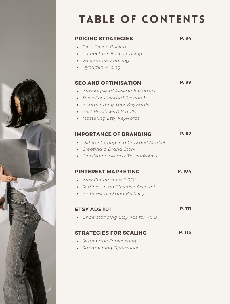 Over 100+ pages, this guide breaks down everything you need to start and scale a print on demand business, from choosing winning niches and designing products to setting up your store and driving consistent traffic.