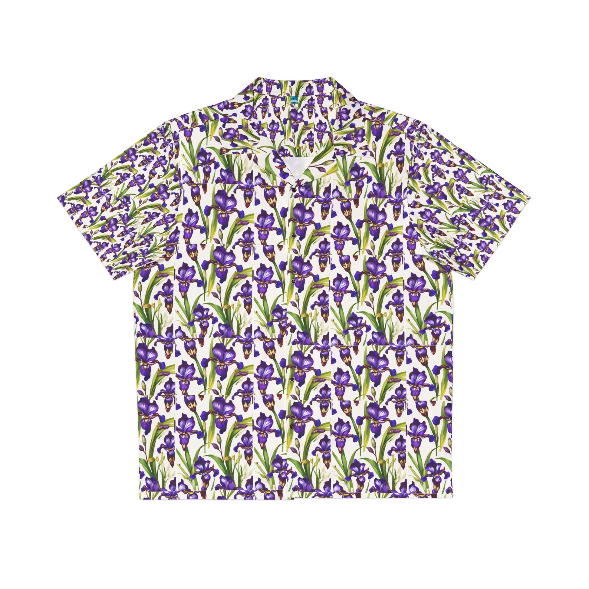 Hawaiian Shirt with a design of the rare North American Dwarf Crested Iris Flowering Plant, this plant is beautiful but yet known to be dangerous. Send the silent message with this Hawaiian shirt that makes the bold statement of being handsome and strong combined in one. Give as a gift or treat yourself. Nothing says "I love summer" like a Hawaiian shirt, and now, you can make this iconic shirt yours. Made to have a cozy boxy fit and a notch lapel collar that are perfect for any laidback scenario, these shirts come with a handy chest pocket and a 95% polyester and 5% spandex fabric for silky comfort. Choose between black or white buttons & customize it to taste.